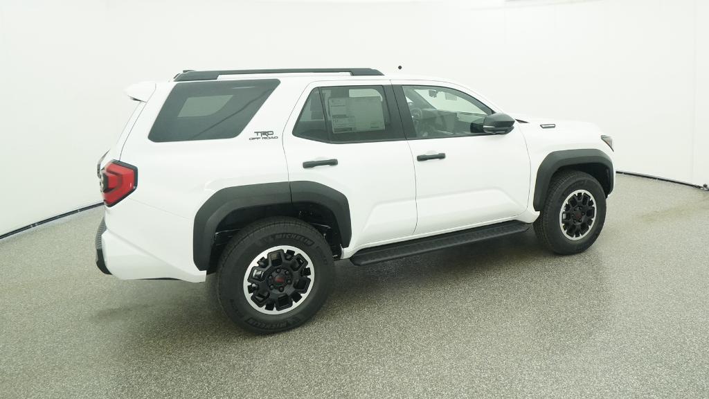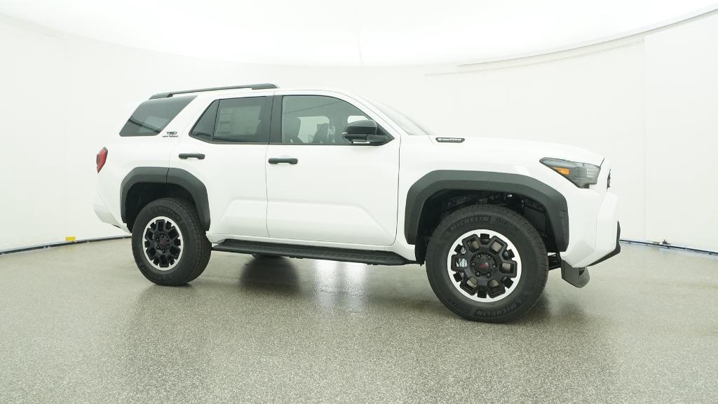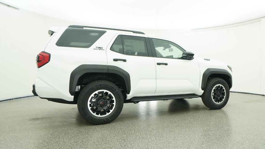 - Black honeycomb-style grille, mirror caps, door handles and overfenders; color-keyed rear spoiler; black "TRD OFF ROAD" and "4RUNNER" badges