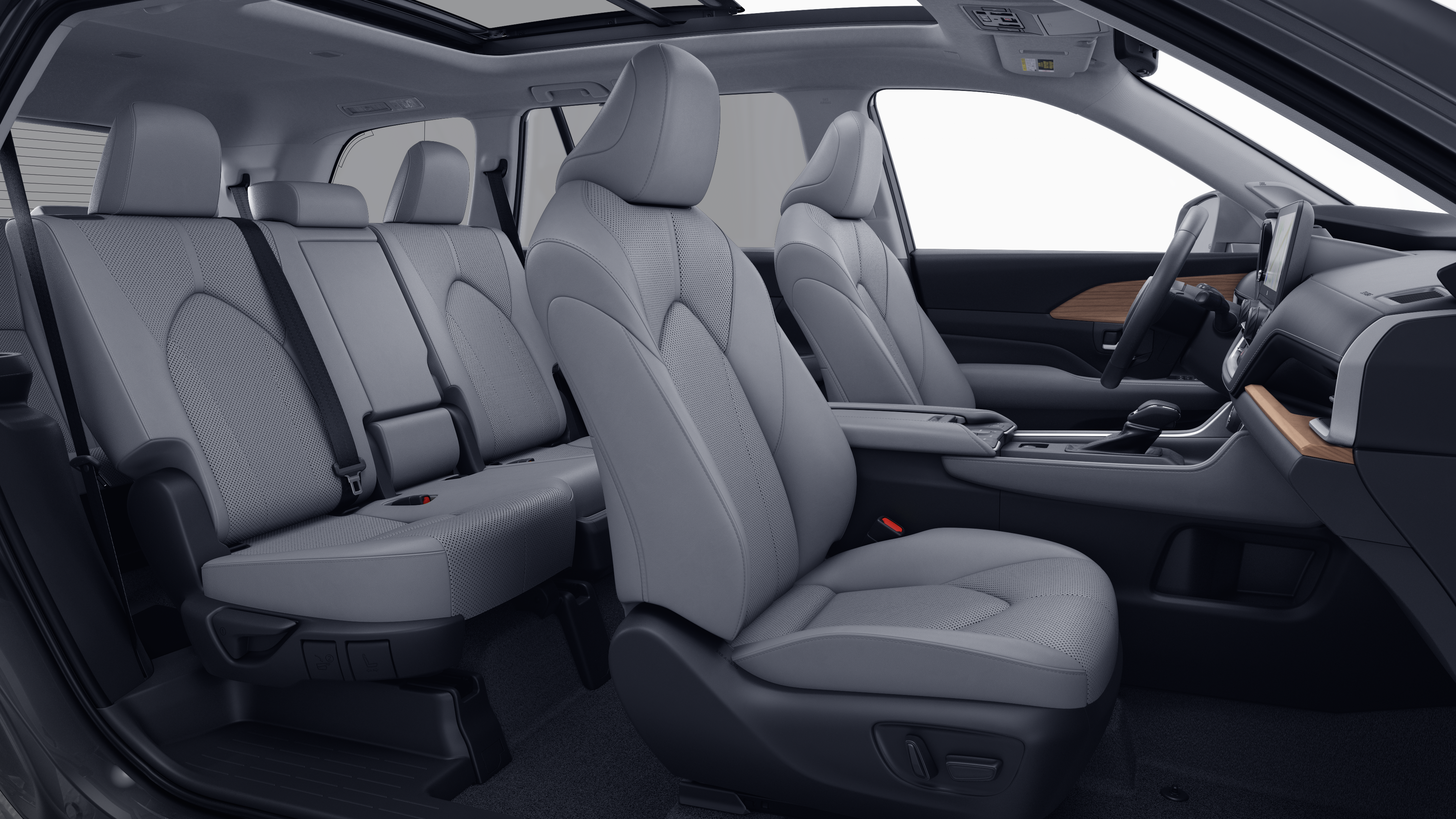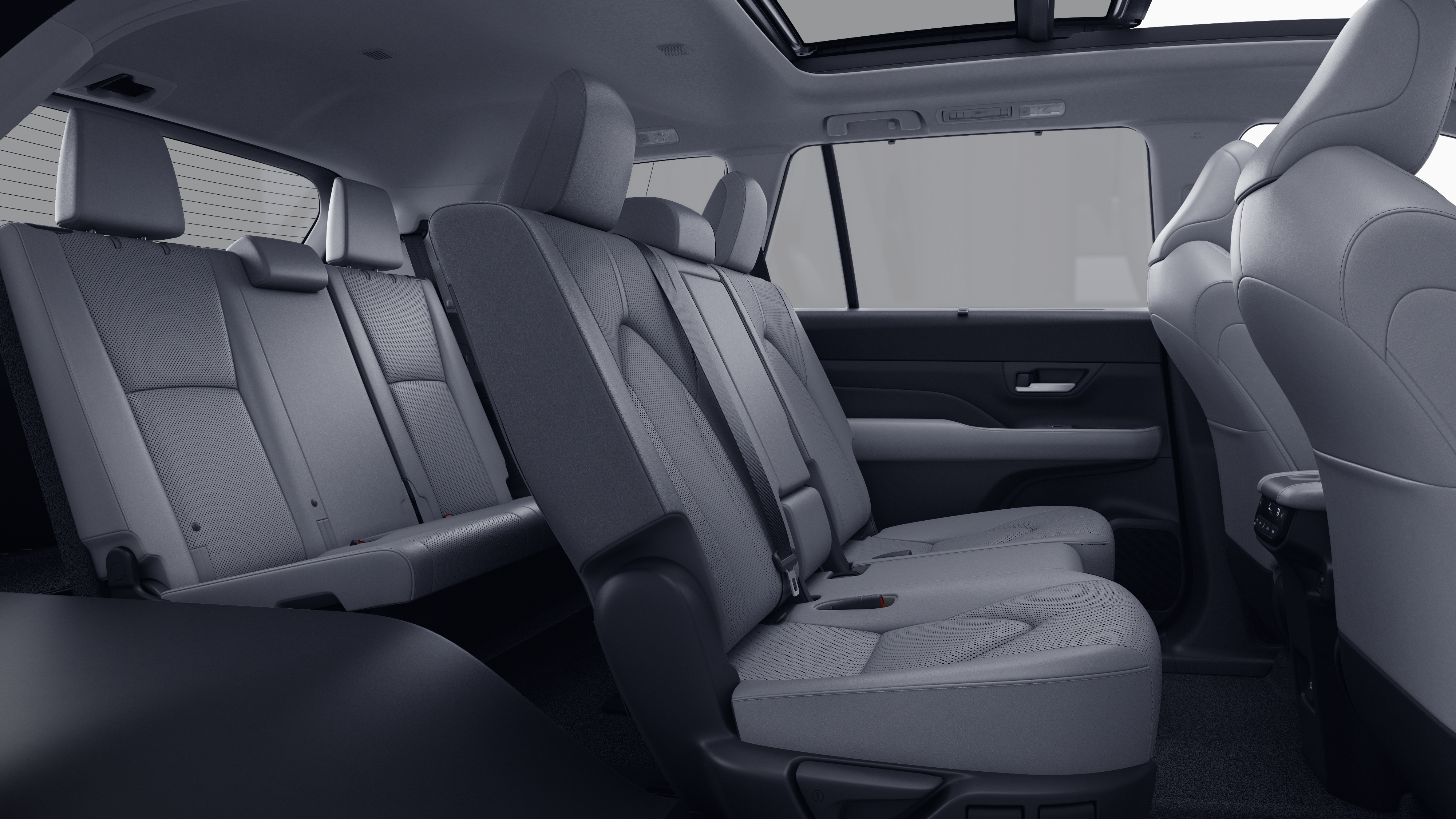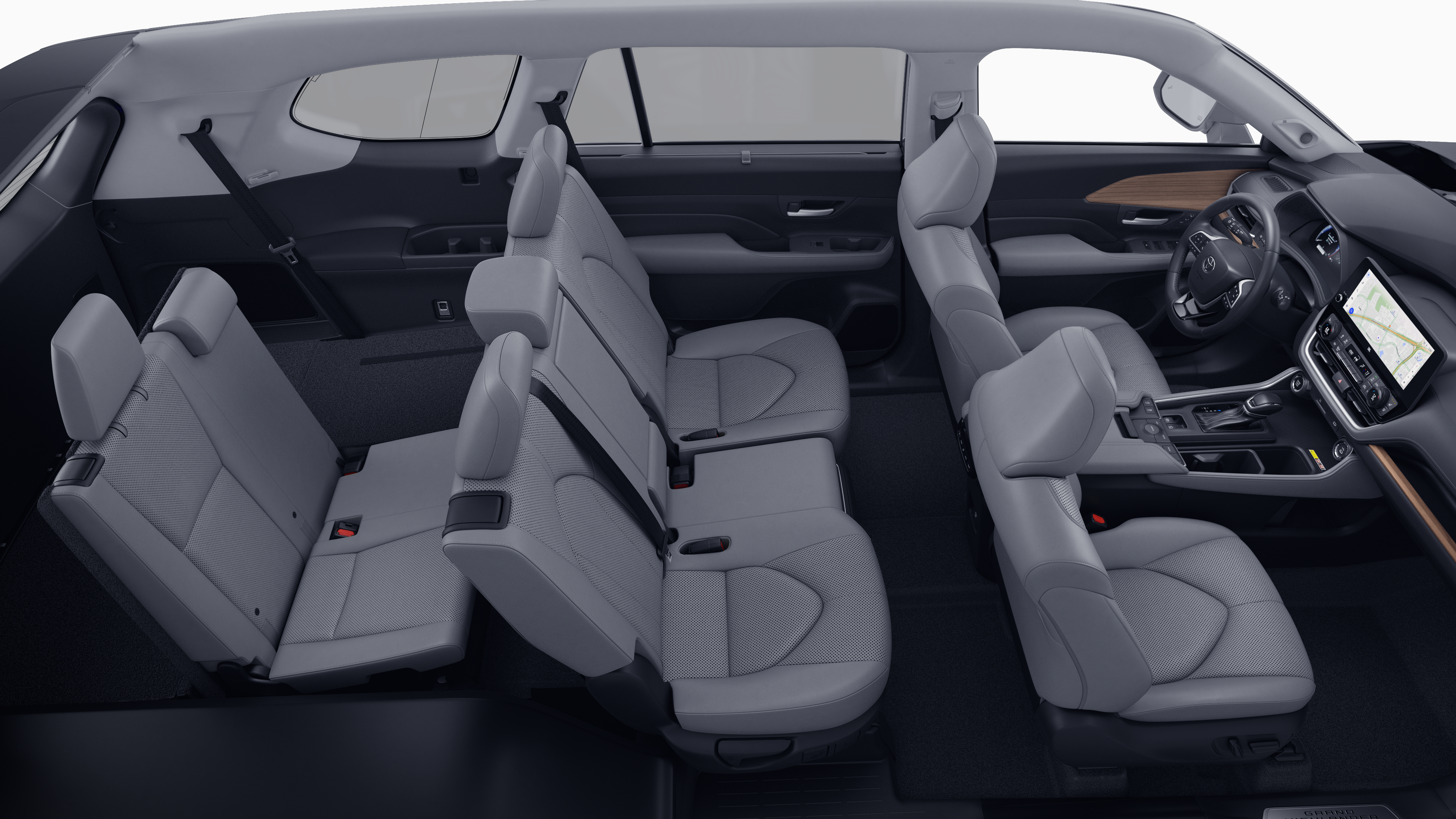 - 7-passenger seating with second-row fold-down captain's chairs and fold-down inboard armrests, adjustable headrests and two cup holders mounted on the floor; and 60/40 split, fold-down third-row seats with sliding headrests and recline function