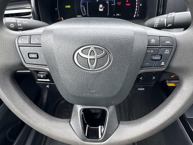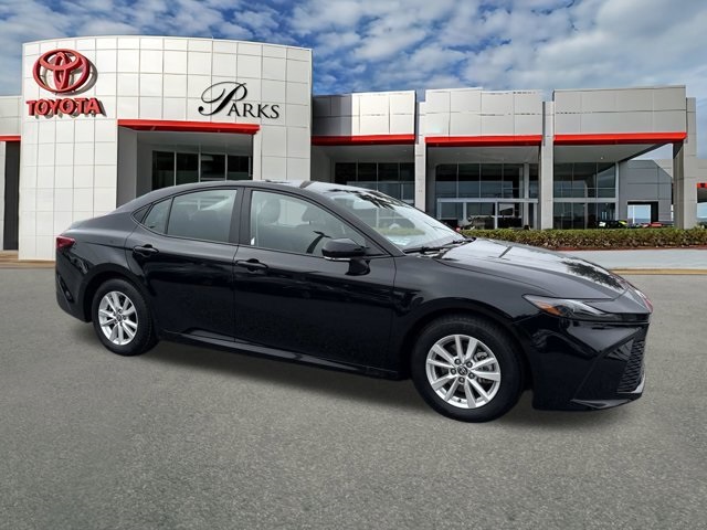 Midnight Black Metallic 2025 Toyota Camry LE 2.5L 4-Cylinder 16V DOHC eCVT FWD **1 OWNER CLEAN CARFAX**, **BACKUP CAMERA**, **BLUETOOTH**, **APPLE CAR PLAY**, **GOOGLE ANDROID AUTO**, **TOYOTA SAFETY SENSE**, **LANE DEPARTURE WARNING**, **BLIND SPOT MONITOR**, 2.5L 4-Cylinder 16V DOHC, Black w/Fabric Seat Trim, ABS brakes, Active Cruise Control, Alloy wheels, Electronic Stability Control, Front dual zone A/C, Heated door mirrors, Illuminated entry, Low tire pressure warning, Remote keyless entry, Traction control.