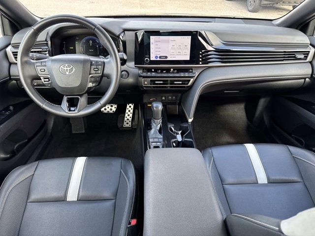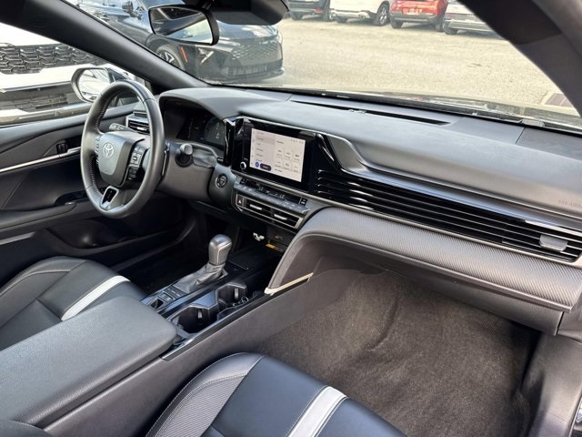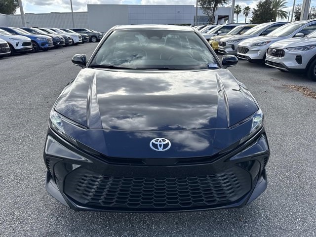 Midnight Black Metallic 2025 Toyota Camry SE 2.5L 4-Cylinder 16V DOHC eCVT FWD **1 OWNER CLEAN CARFAX**, **TOYOTA FACTORY CERTIFIED**, **BACKUP CAMERA**, **BLUETOOTH**, **APPLE CAR PLAY**, **GOOGLE ANDROID AUTO**, **TOYOTA SAFETY SENSE**, **LANE DEPARTURE WARNING**, 2.5L 4-Cylinder 16V DOHC, Black w/SofTex & Fabric Seat Trim, ABS brakes, Active Cruise Control, Alloy wheels, Electronic Stability Control, Front dual zone A/C, Heated door mirrors, Illuminated entry, Low tire pressure warning, Remote keyless entry, Traction control.